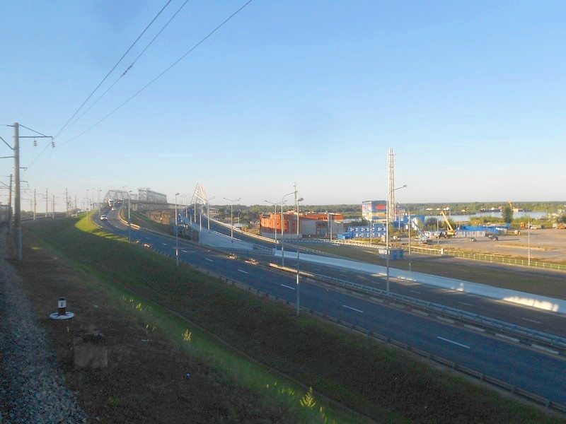Перегон Нижний Новгород - Толоконцево. Недавно был открыт новый автомобильный мост через Волгу, пролегающий