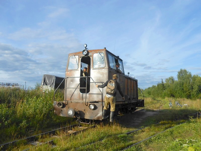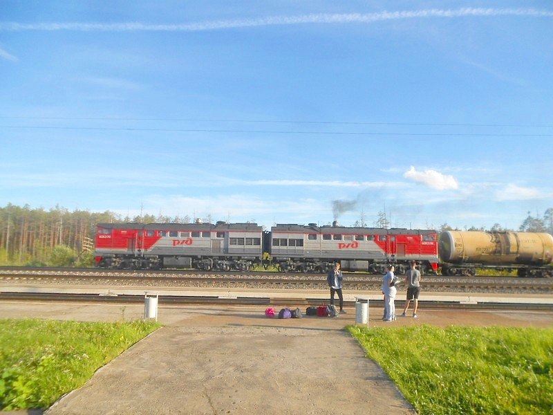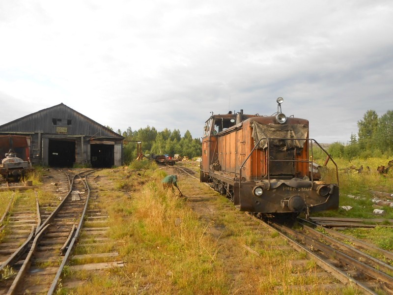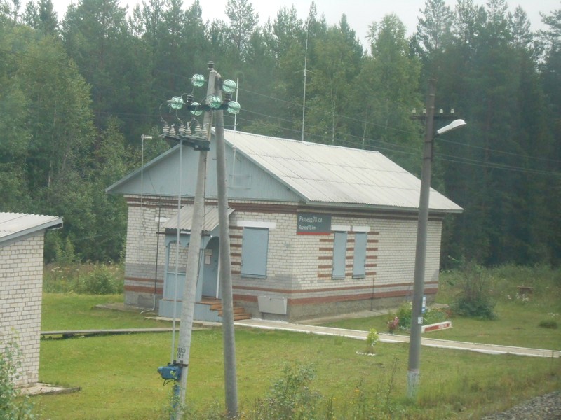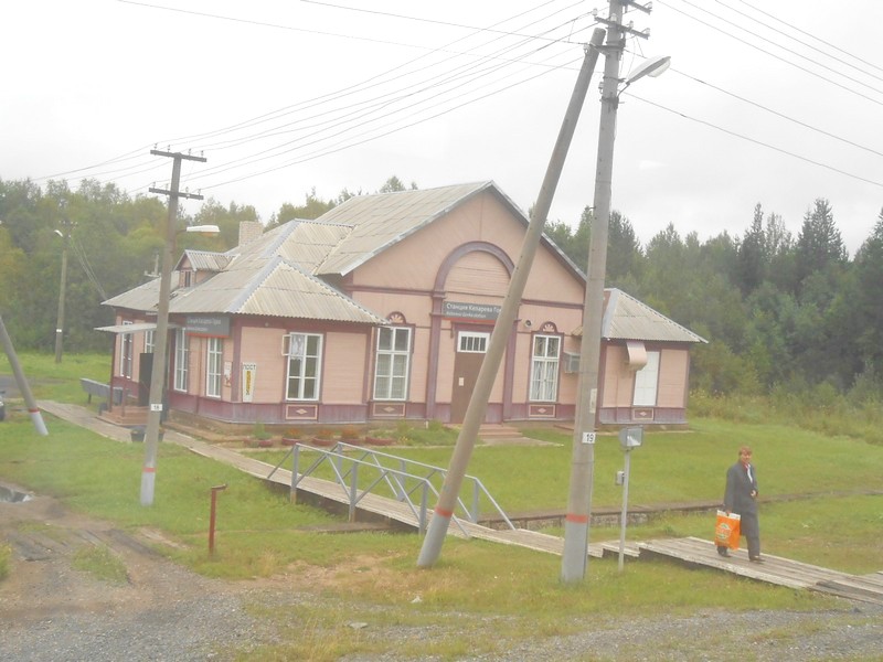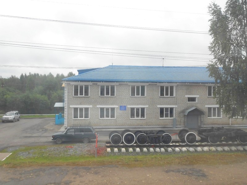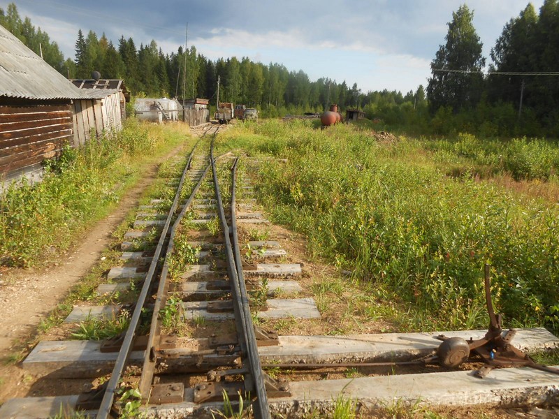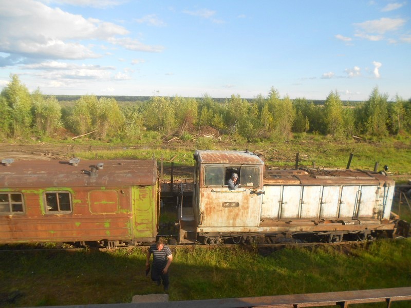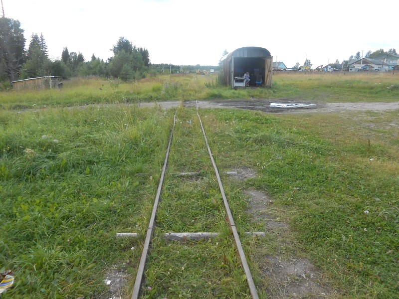 Длительная стоянка поезда по станции Пинюг. Во время стоянки пытаюсь выяснить состояние Пинюгской узкоколейной железной дороги.