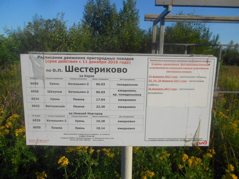 Вот и Шестериково. Выхожу именно здесь, хотя можно было бы немного дальше - до Пижмы, 716-й километр.