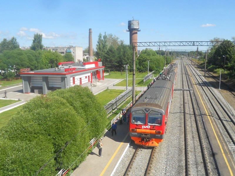 Станция Лянгасово. Электропоезд ЭД9М-0037, следующий по маршруту Котельнич II - Киров. Вид на восток.