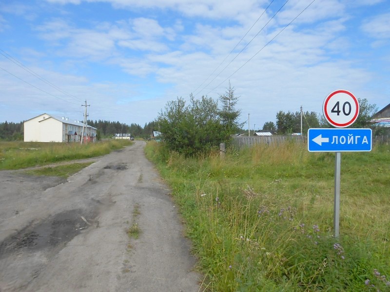 Кизема. Указатель есть, но дороги на Лойгу на самом деле нет.