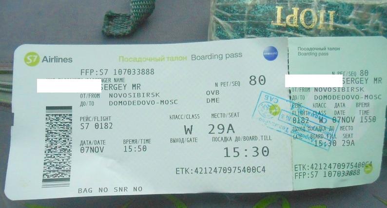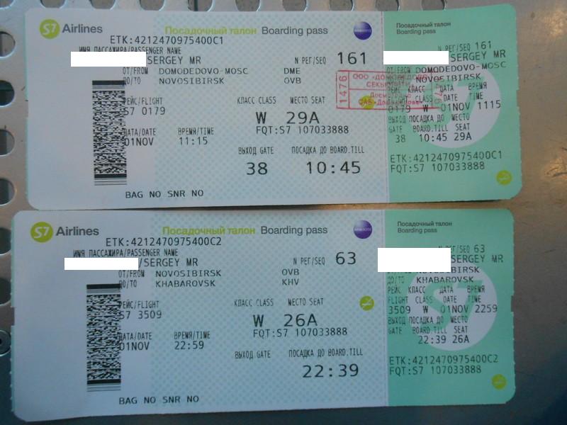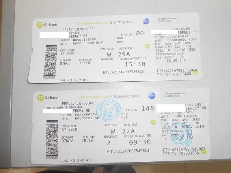 Посадочные талоны Домодедово - Новосибирск и Новосибирск - Хабаровск.