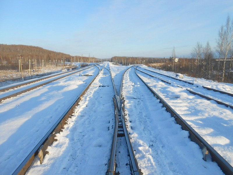 Налево - Волочаевка и Ванино (пути рядом), направо - Байкало-Амурская магистраль на Тынду, Тайшет и Москву.