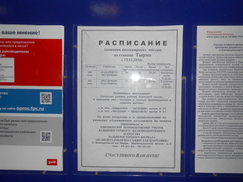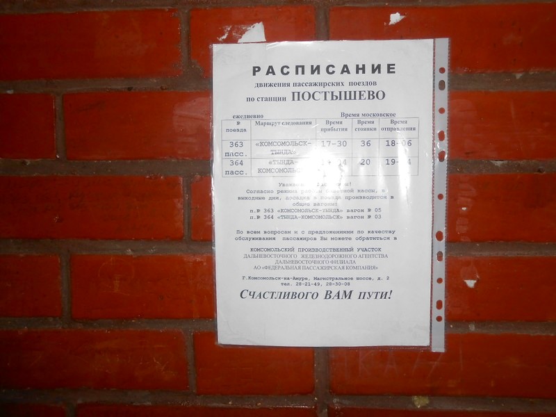Вот такое, мягко говоря, "негустое" расписание движения поездов по Комсомольску. На два из трёх направлений -