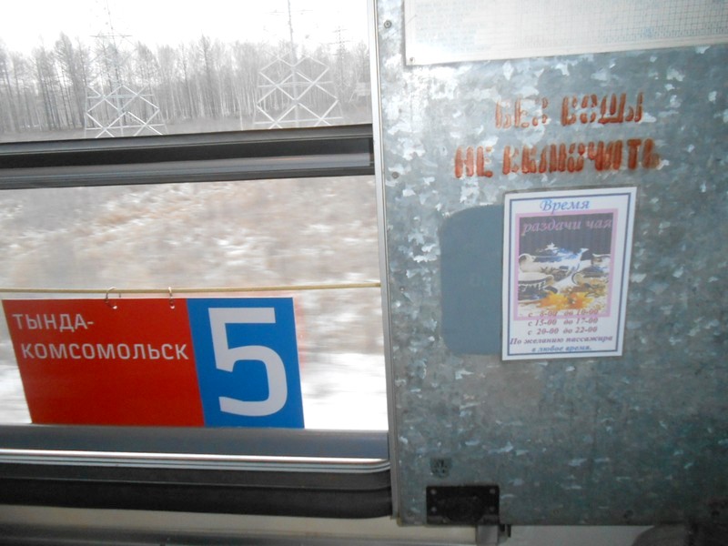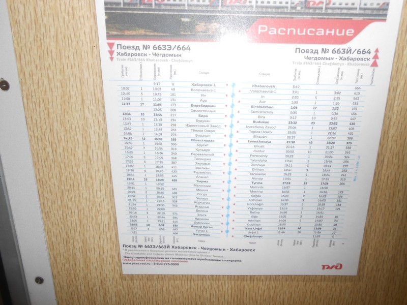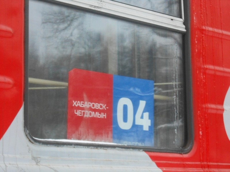 Маршрутная табличка в вагоне поезда Хабаровск — Чегдомын. Такое «уныние» заменило традиционные маршрутные доски.