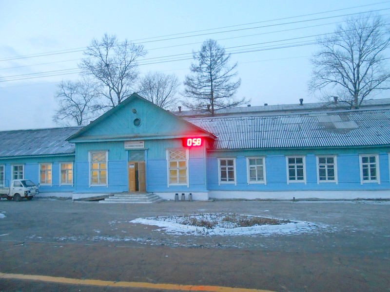 Вокзал на станции Новый Ургал. Находится одновременно как на линии Известковая — Чегдомын,