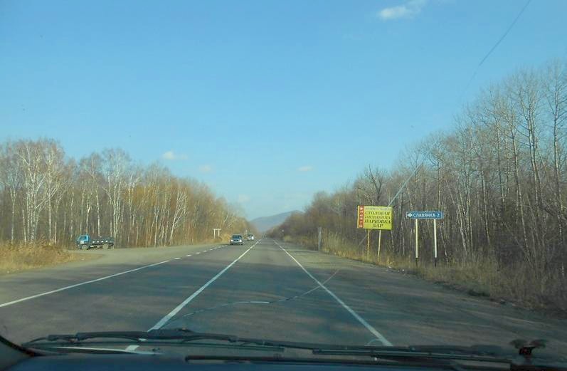 Дорога Хабаровск - Комсомольск, длиной 400 километров. Асфальтированная с одной полосой движения в каждом направлении, не очень большим потоком машин.