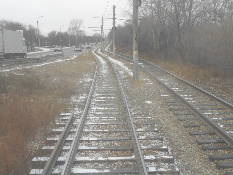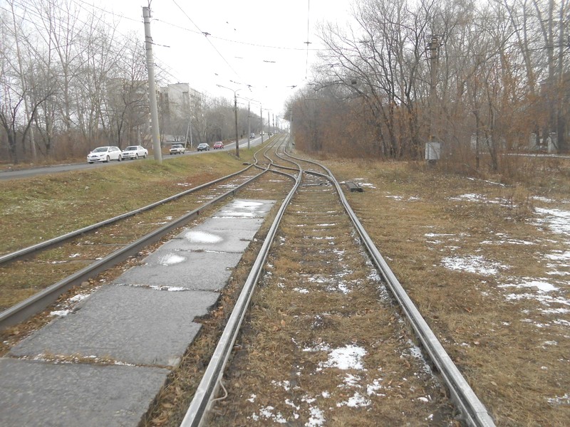 Трамвайная линия на улице Пирогова, севернее промежуточного кольца "Мылки". Линии встречных направлений