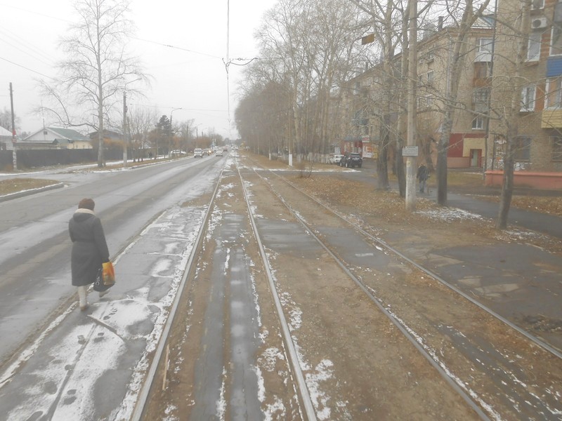 Комсомольского трамвая на Дзёмги в декабре 2017 года.