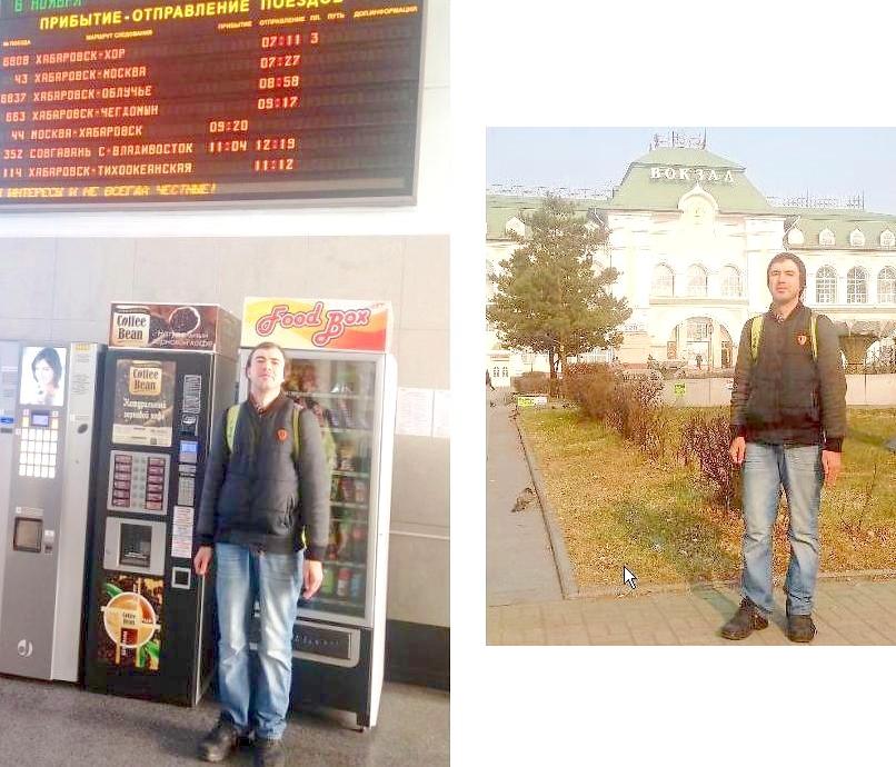 Автор на вокзале и у вокзала в Хабаровске. Фотографии позитивной жительницы этого города, неожиданным образом заинтересовавшейся путешествием.