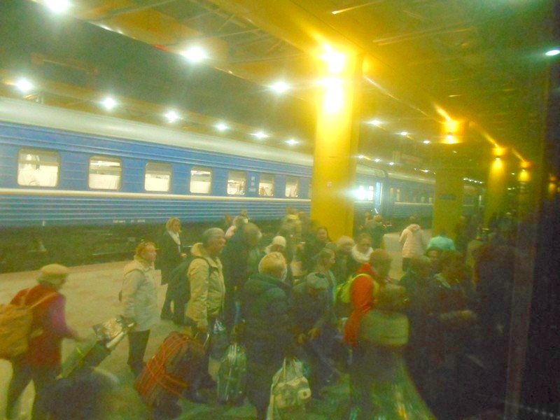 Минск. Посадка на поезд Адлер - Калининград. Пассажиры выглядят как дачники-пенсионеры.