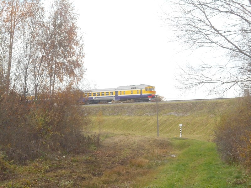 Дизель-поезд следует из Валга в Ригу. Снимок сделан непосредственно на линии эстонско-латвийской границы.