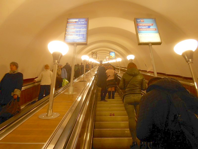 "Ломоносовская", классический ленинградский "горизонтальный лифт". "Китайские" Новокрестовская и Беговая по конструкции другие.