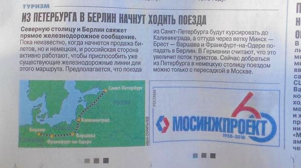 Запуск поезда Санкт-Петербург - Берлин означал бы возврат