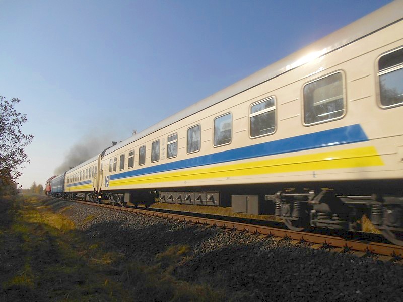 Украинский пассажирский поезд (первый вагон - белорусский) следует из Риги в Киев. Перегон Губерния - Мешкуйчяй.