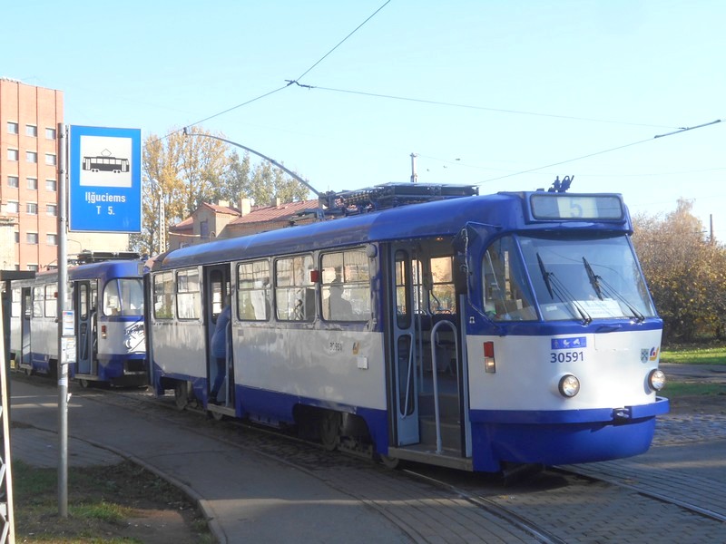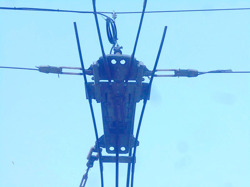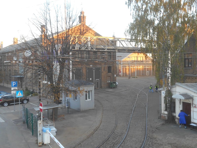 В Риге на трамвайной сети используются штанги и воздушные стрелки.