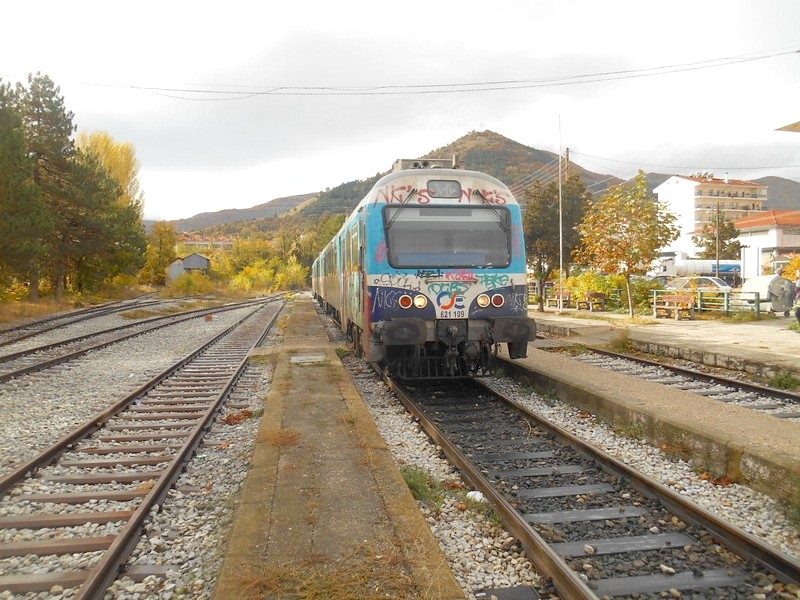 Дизель-поезд прибыл в самую дальнюю точку Железной дороги Греции - на станцию Орменион.