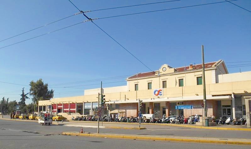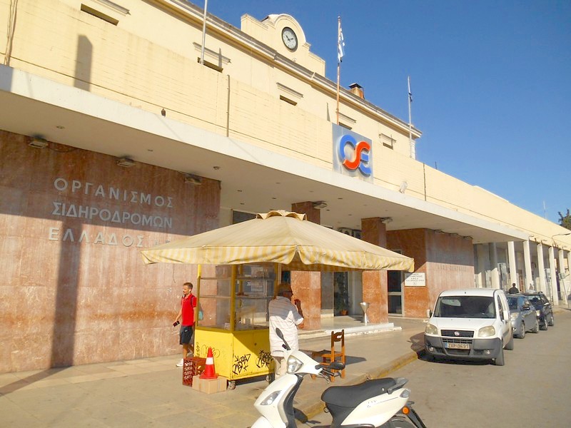 Вокзал на станции Афины. Вид из города. Уместен для «райцентра Гадюкино», а не для всемирно известного мегаполиса.