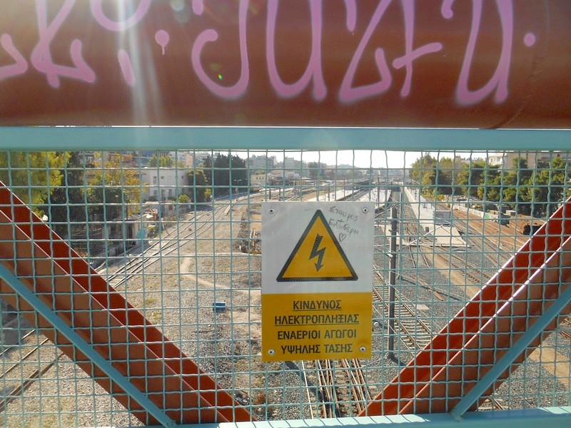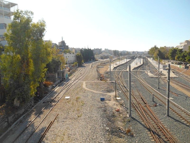 Станция Афины. Вид с переходного моста к северу от вокзала.