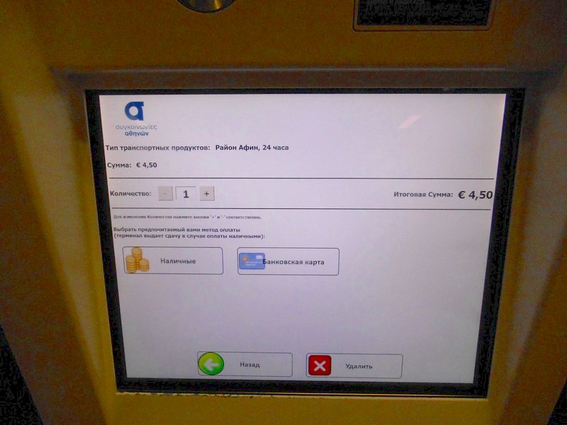 Покупка суточного билета на Афинский метрополитен и трамвай.