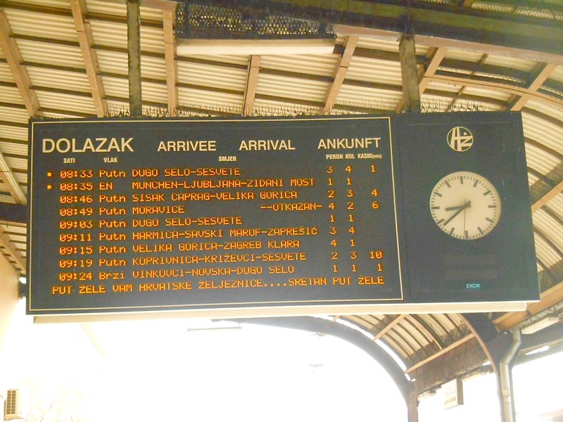 Вокзал Загреб-Главный (Zagreb Hlavni Kolodvor). Табло с отображением прибывающих поездов.
