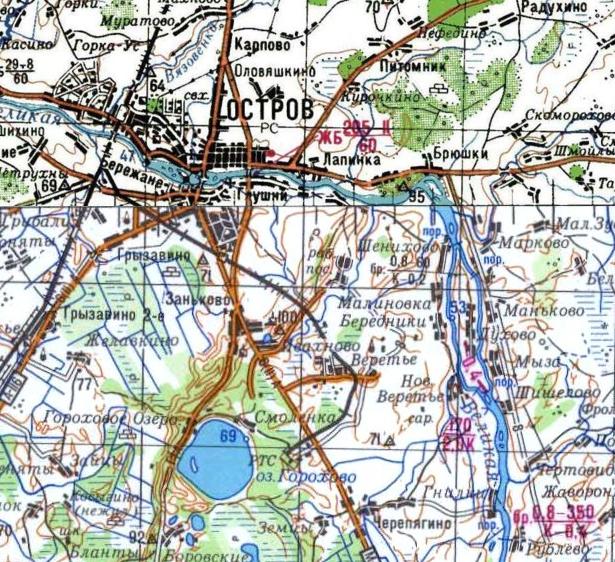 Железнодорожная линия вблизи города Остров, маршрут от военного городка до аэродрома (Псковская область).