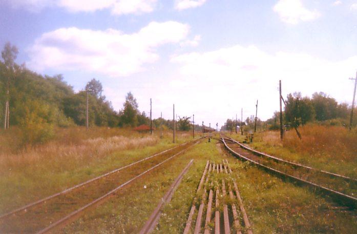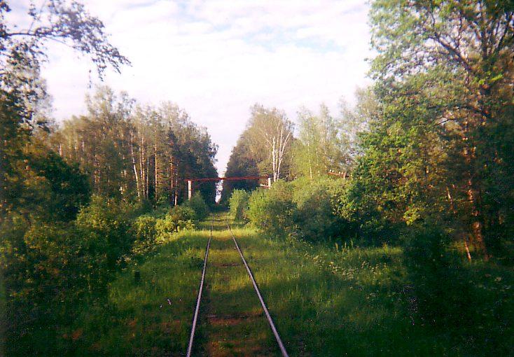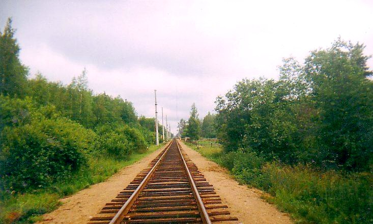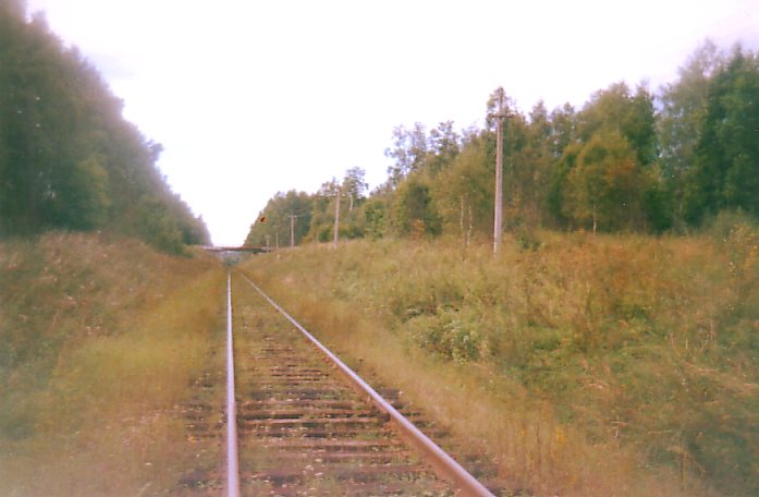 Chemin de fer secondaire entre Saint-Pétersbourg et Vélikiп Novgovod au sud de la gare de Radofinnikovo en région de Saint-Pétersbourg (dite "Léningradskaпa oblast"). Dans ce point, il avait le croisement d'une LVE forestiиre qui est démoli depuis quelques deux ans... Juillet 2000.