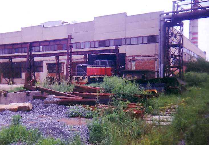 Centrale électrique de Chatoura (Russie, région de Moscou) et ses voies ferrées industruelles а l'écartement large avec un locotracteur TGM en stationnement prиs de dépфt. Il a la mкme vue que les locotracteurs а voie étroite: TU7 et TU8. Ces locotracteurs sont produits par l'Usine de constructions mécaniques de Kambarka qui est située dans la région d'Ijevsk. Juillet 2000.