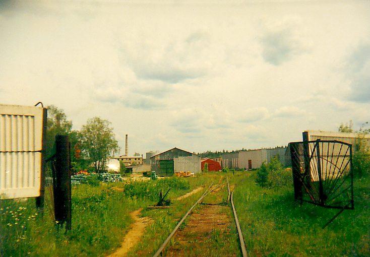 Une verrerie "Bogatyr" et sa voie ferrée qui part de cette verrerie vers la gare de Néroudnaпa (Russie, le village de Krasny Bogatyr dans la région de Vladimir). Juillet 2000.