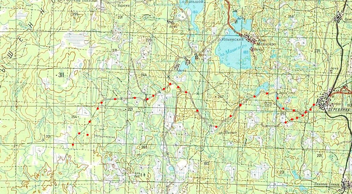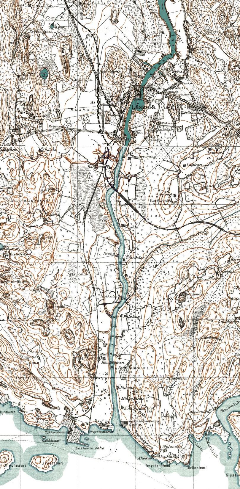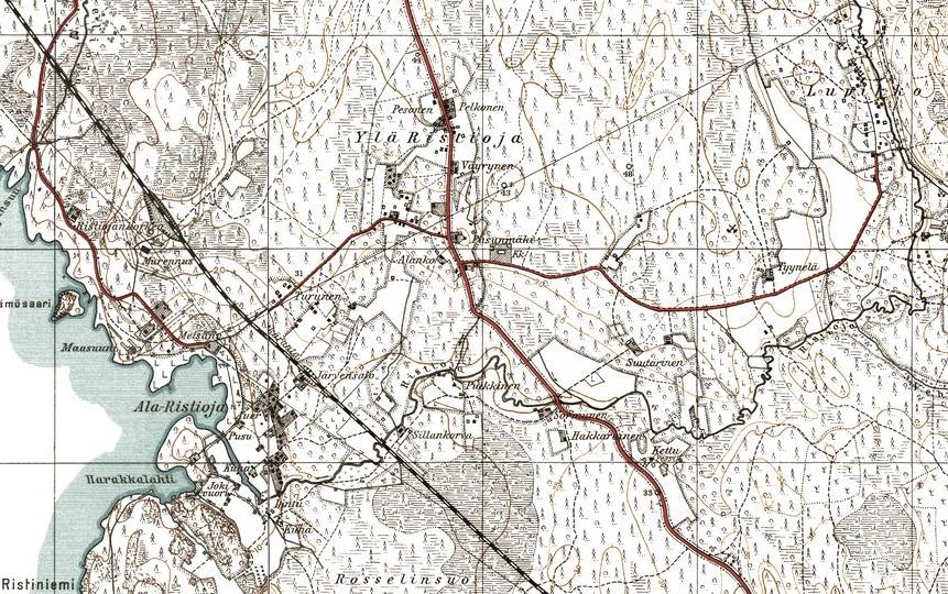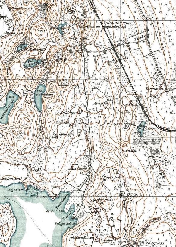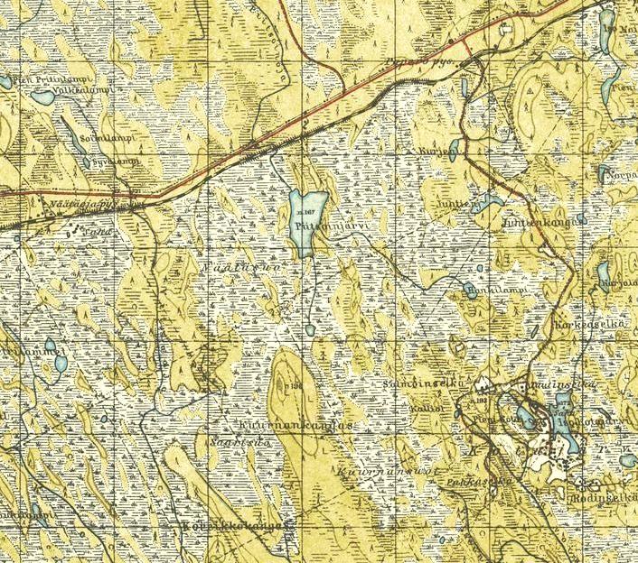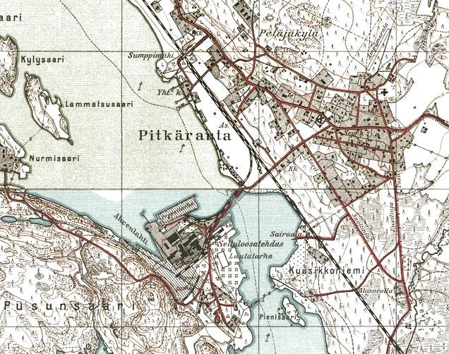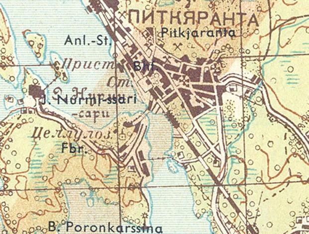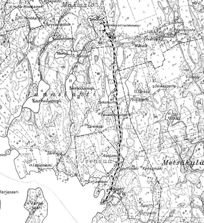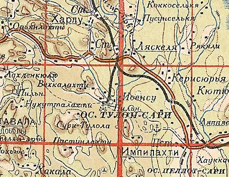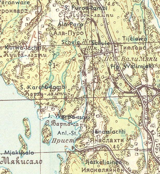 изданной в Финляндии (состояние местности на 1930-е годы). Узкоколейная железная дорога,