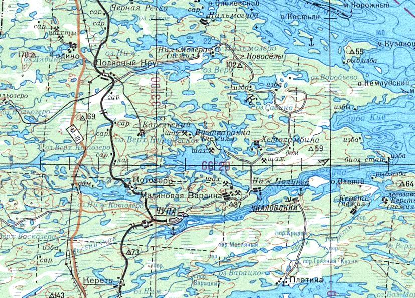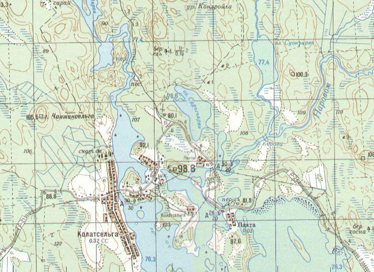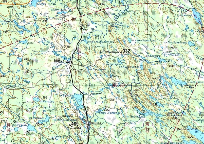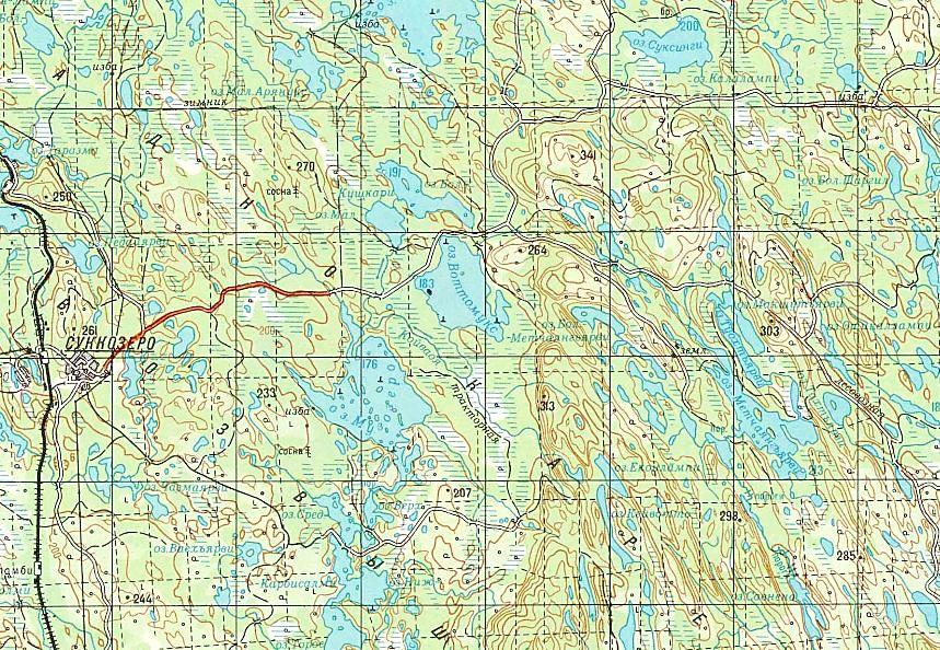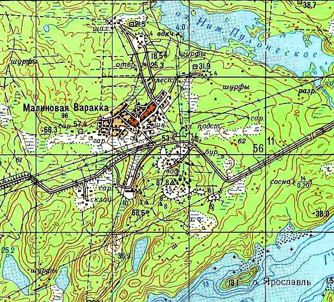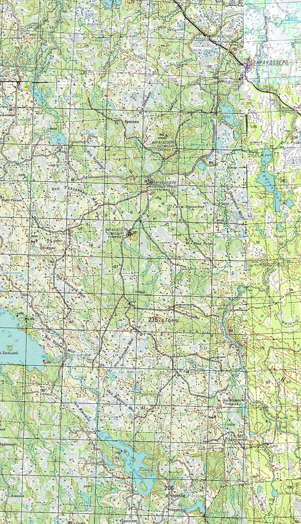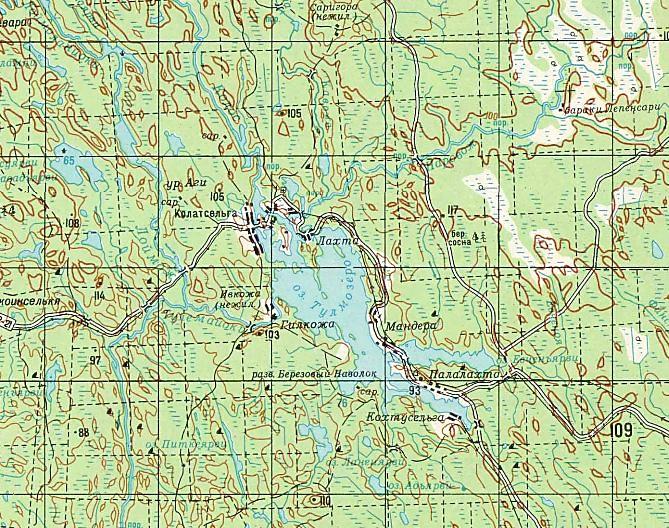 Окрестности населённого пункта Малиновая Варакка на топографической карте масштаба 1:50 000,