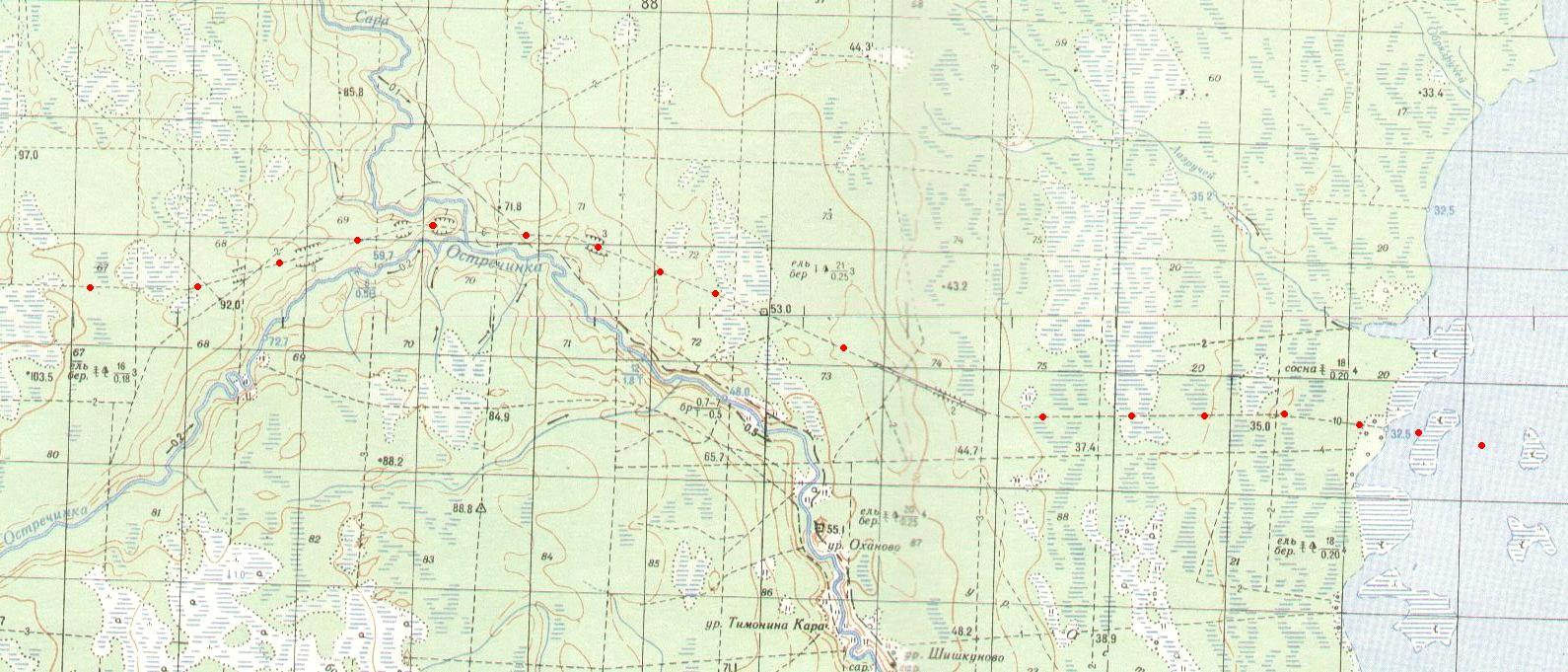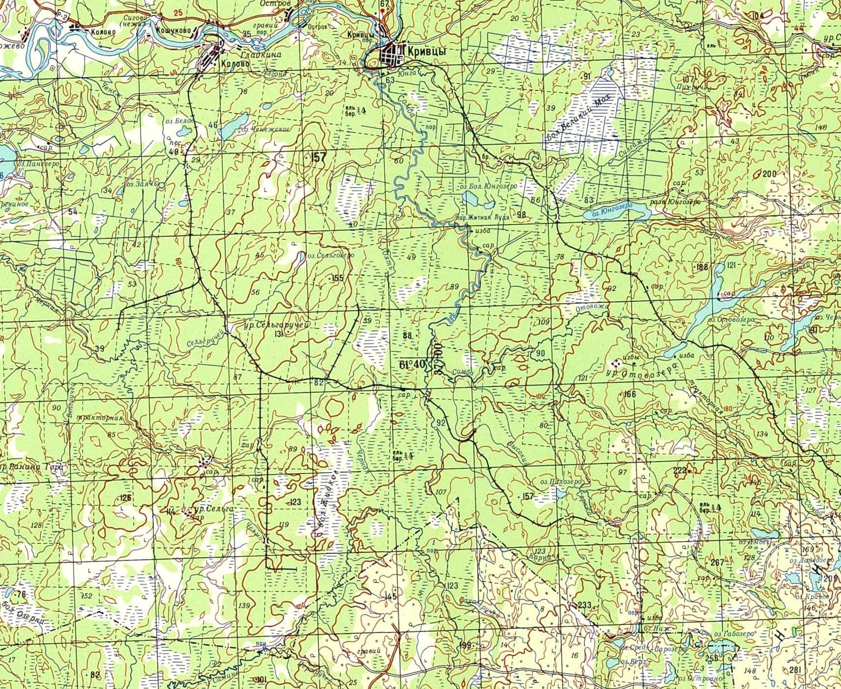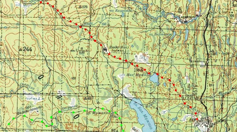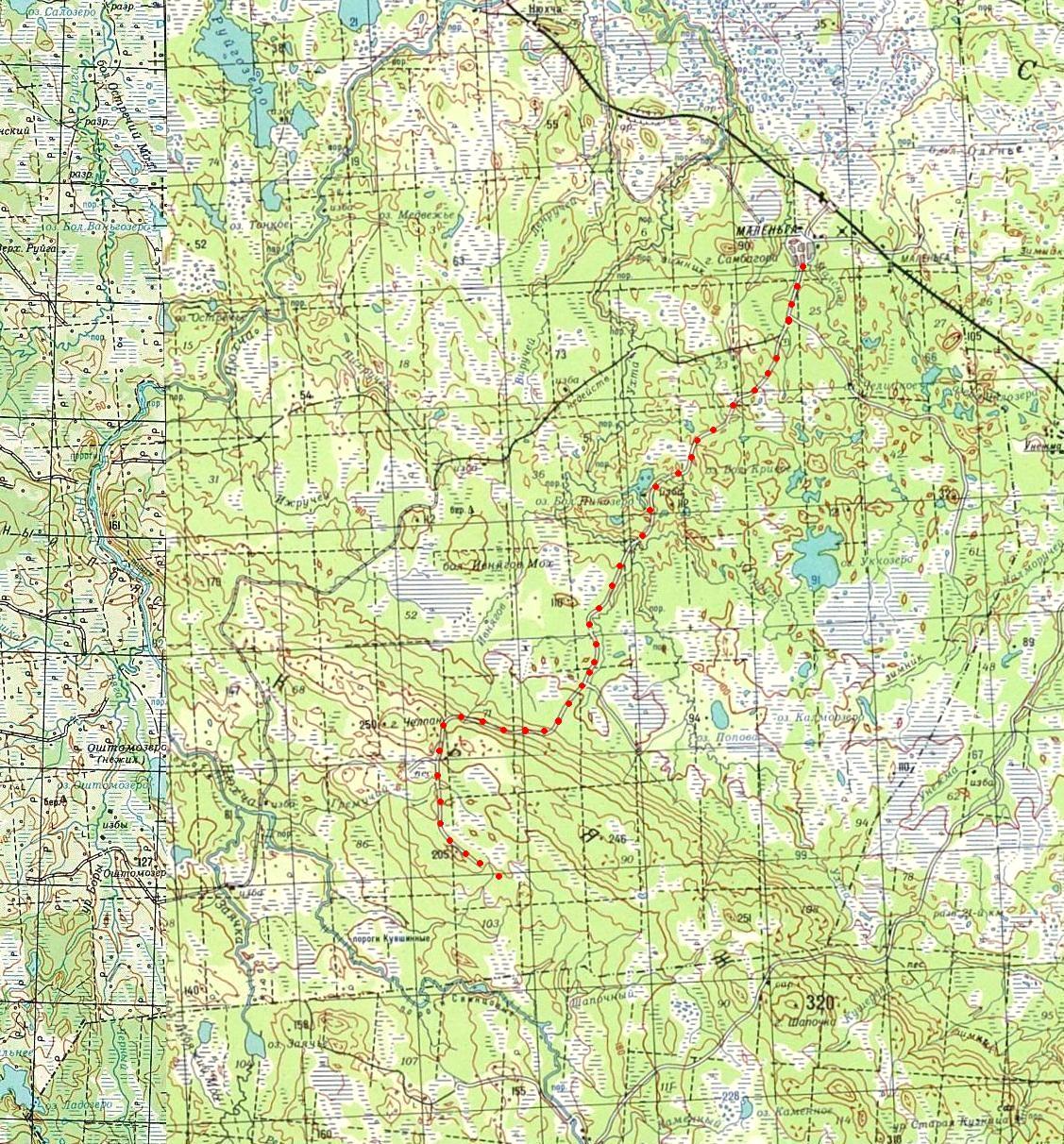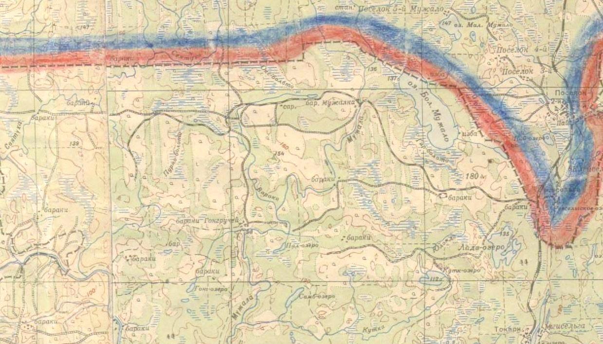 Окрестности населённого пункта Малиновая Варакка на топографической карте масштаба 1:50 000,