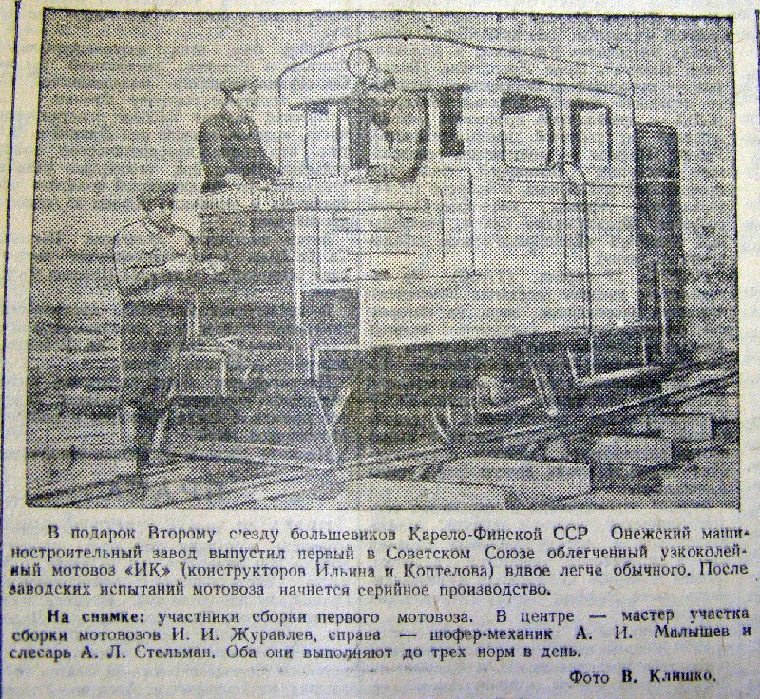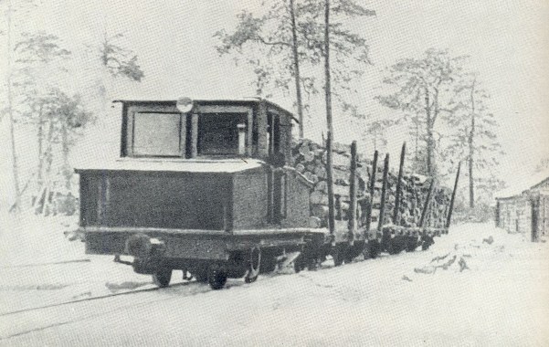 Мотовоз Муг2 (?) на узкоколейной железной дороге Кондопожского лесхоза, 1937 год (фотография из книги «Твой путь, Карелия») (Источник)