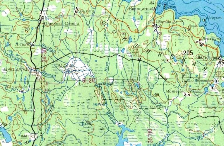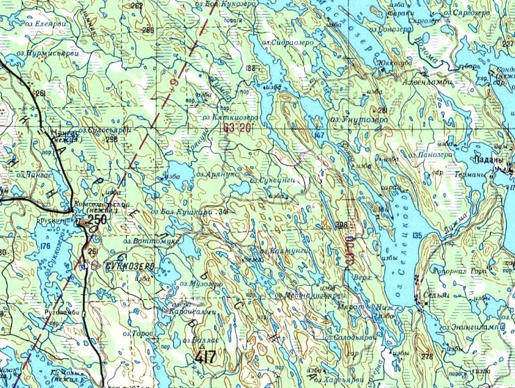 масштаба 1:200 000, изданной в 1994 году. По неподтверждённым данным, узкоколейная железная дорога действовала в 1930-1960-х годах. Главная линия узкоколейной железной дороги пролегала от посёлка Панозеро в северном направлении.