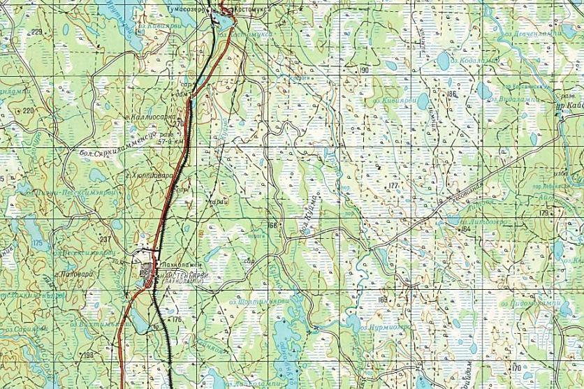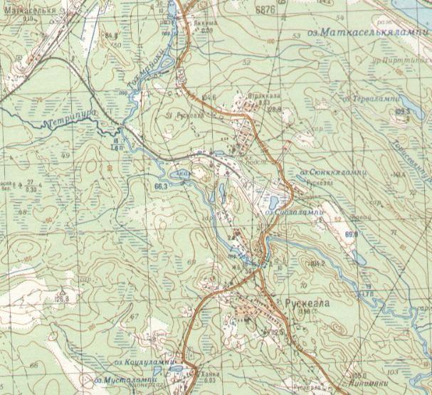 масштаба 1:50 000, изданной в 1989 году. В карьере, расположенном к северу от посёлка Рускеала, производится добыча мрамора. Карьер связан подъездным путём широкой колеи с узловой железнодорожной станцией Маткаселькя.