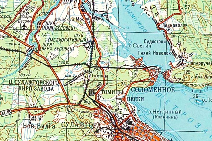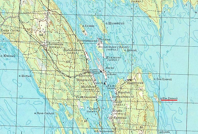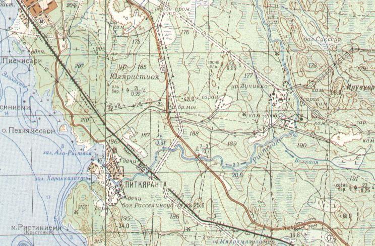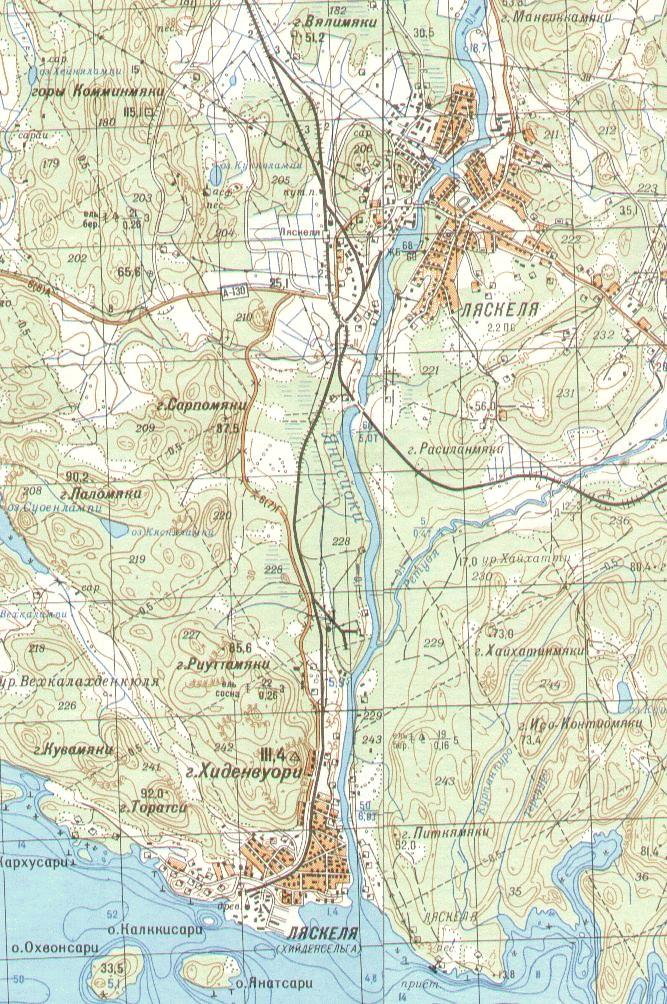 топографической карте масштаба 1:200 000, изданной в 1994 году. По неподтверждённым данным, на острове Валаам действовал рельсовый путь узкой колеи, построенный в военных целях.
