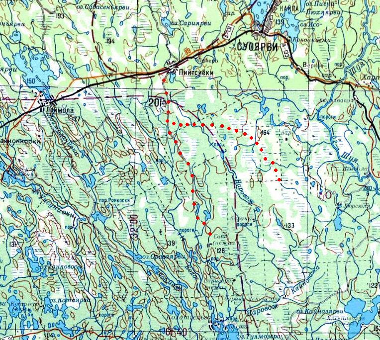 Пийтсийокская узкоколейная железная дорога. Начальный пункт — посёлок Пийтсийоки, расположенный вблизи станции Пийтсийоки на железнодорожной линии Янисъярви — Суоярви.