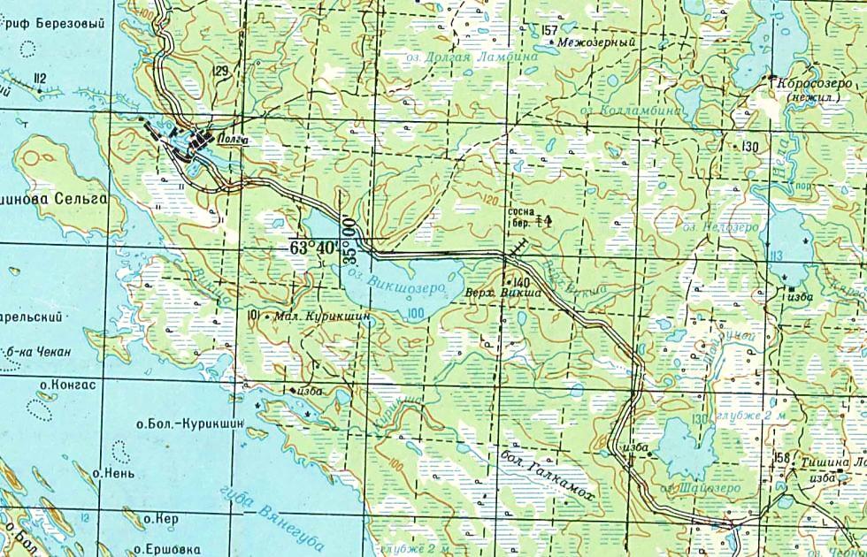 изданной в 1984 году (нанесена условно). Село Поньгома находится вблизи устья реки Поньгома (не следует путать его со станцией Поньгома на железнодорожной линии Беломорск — Ручьи-Карельские, находящейся в другом месте). Не позднее 1930-х годов в окрестностях села была построена узкоколейная железная дорога. По неподтверждённым данным, она пролегала по направлению губа Телячья — посёлок Поньгома Речка. Узкоколейная железная дорога предназначалась для доставки морепродуктов и леса к железнодорожной линии широкой колеи.