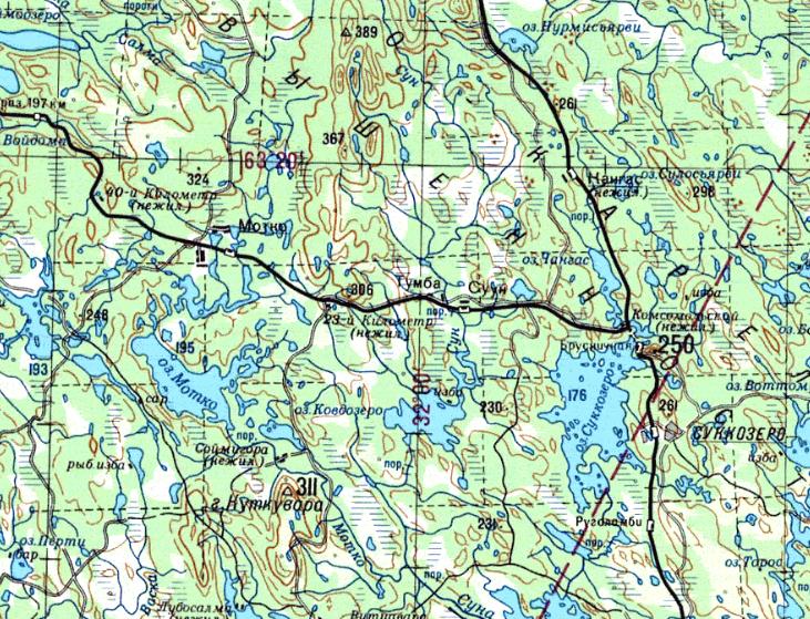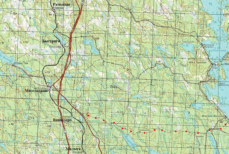 изданной в 1994 году (нанесена на основе данных других карт). Ванзозерская (Ванжозерская) узкоколейная железная дорога пролегала по направлению Ванзозеро — Морская Масельга — шлюз №8 — берег озера Маткозеро.