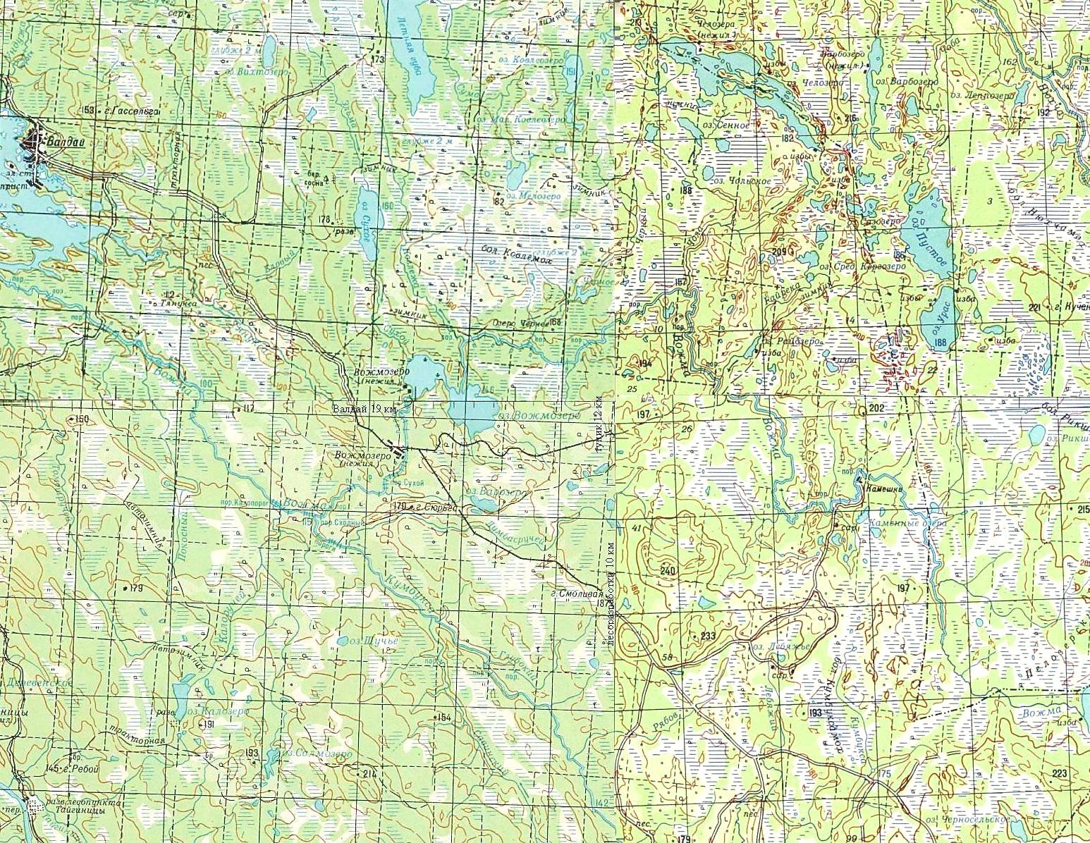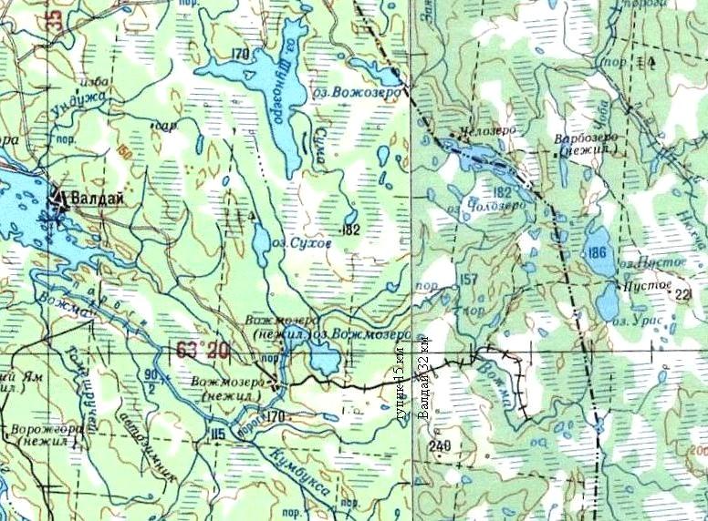 На магистрали узкоколейной железной дороги существовал лесной посёлок Вожмозеро (22 километра от Валдая). Протяжённость узкоколейной железной дороги на пике развития составляла не менее 80 километров.