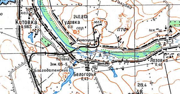 Узкоколейная железная дорога на топографической карте