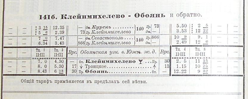 железнодорожных и других пассажирских сообщений», изданного НКПС СССР). Узкоколейная железная дорога связывала уездный город Обоянь со станцией Марьино (в начале XX века называлась Клейнмихелево, c 1917 (?) года — Ржава) на Курско-Харьково-Азовской железной дороге. Изначально узкоколейная железная дорога являлась частной, в 1897 году стала казённой (государственной).