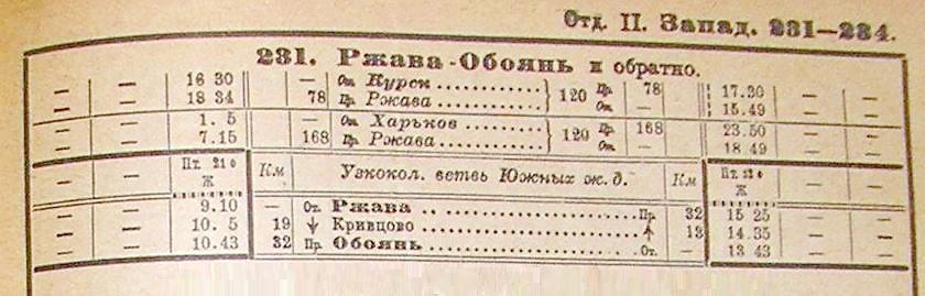 Сведения о дате прекращения эксплуатации узкоколейной железной основаны на материалах «Официальных указателей железнодорожных, пароходных и других пассажирских сообщений» — в «Указателе» на зиму 1936-37 гг. и последующих линия Ржава — Обоянь не указывалась как узкоколейная.
