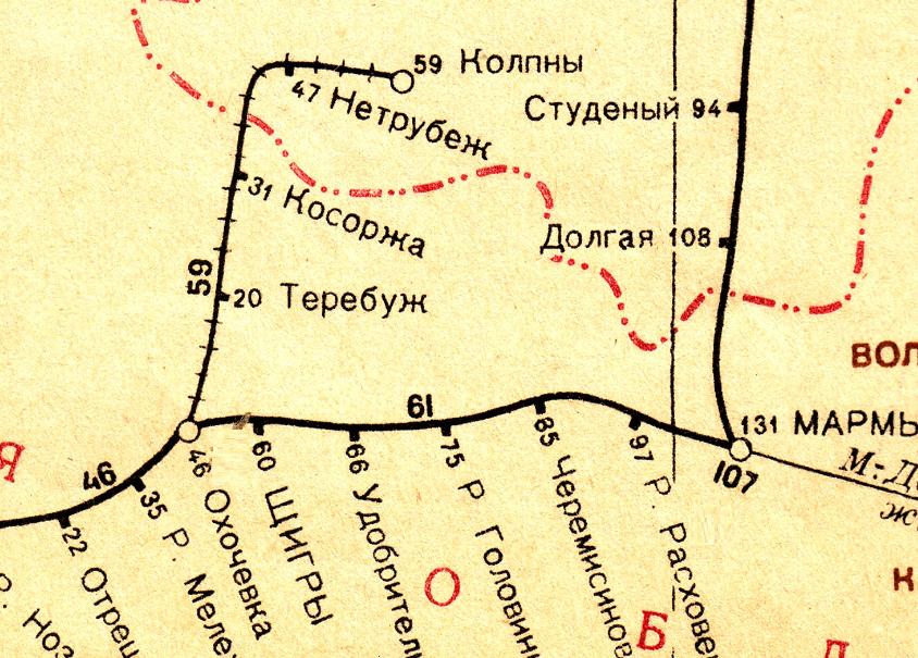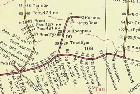 Участок Коренево — Рыльск, по неподтверждённым данным, не был восстановлен после Великой Отечественной войны.