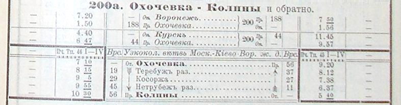 Сведения о дате прекращения эксплуатации узкоколейной железной дороги основаны на материалах «Указателей пассажирских сообщений» — в «Указателе», изданном в 1959 году, линия Охочевка — Колпны не указана как узкоколейная.