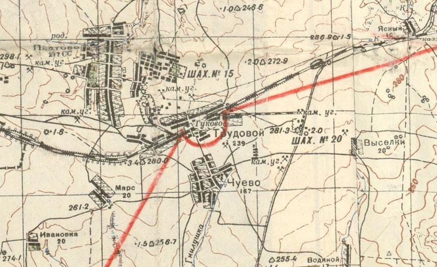 масштаба 1:100 000, изданной в 1983 году. На западной окраине города Шахты действовала наземная узкоколейная железная дорога протяжённостью около 1,5 километров. С почти полной уверенностью можно утверждать, что она представляла собой нетипично длинный «наземный выход» шахтной узкоколейной железной дороги.