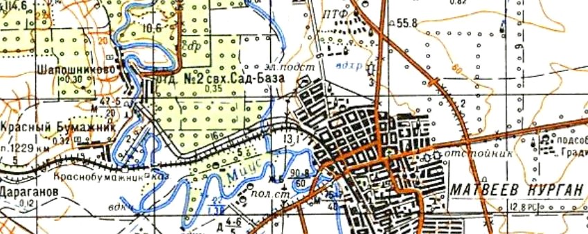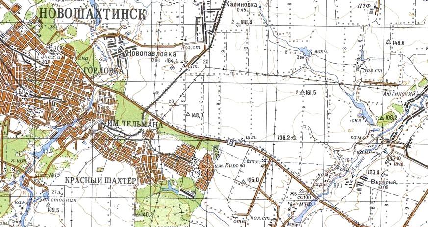 масштаба 1:100 000, изданной в 1983 году. В восточной части города Новошахтинска (район шахты имени Кирова) действовала узкоколейная железная дорога протяжённостью около 4 километров. С почти полной уверенностью можно утверждать, что она представляла собой нетипично длинный «наземный выход» шахтной узкоколейной железной дороги.