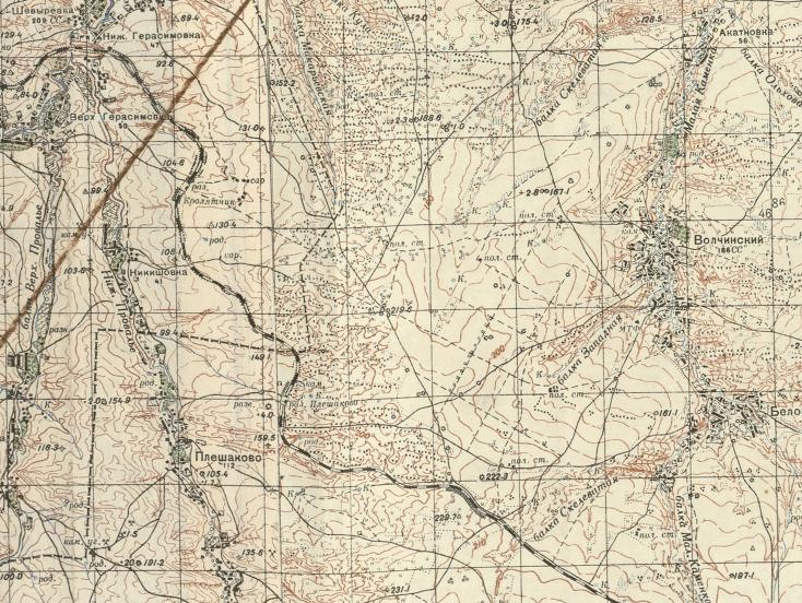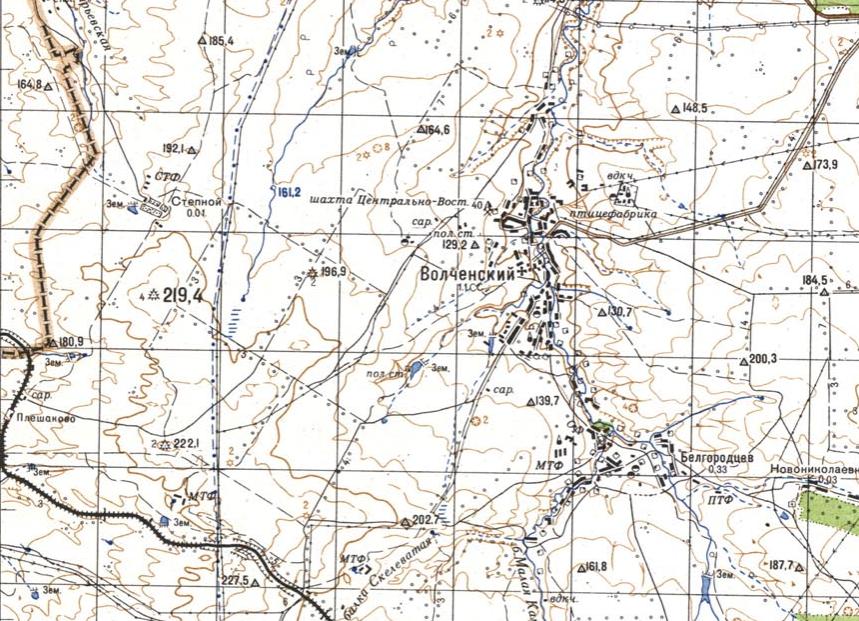 масштаба 1:100 000, изданной в 1982 году. По неподтверждённым данным, узкоколейная железная дорога соединяла станцию Плешаково с угольной шахтой «Центрально-Восточная», находившейся на окраине хутора Волченский. Возможный период работы узкоколейной железной дороги — 1950-е годы.