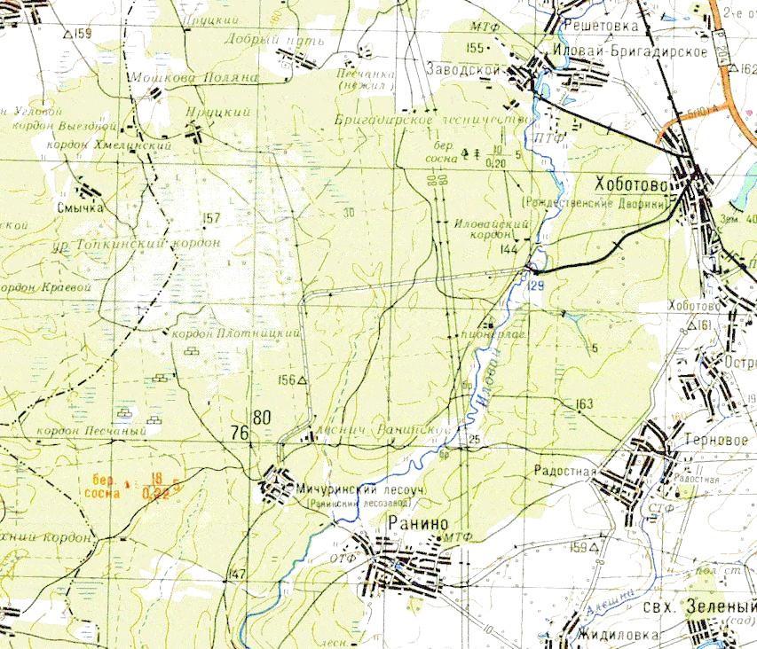 Железнодорожная линия Хоботово — Ранинский лесозавод на топографической карте