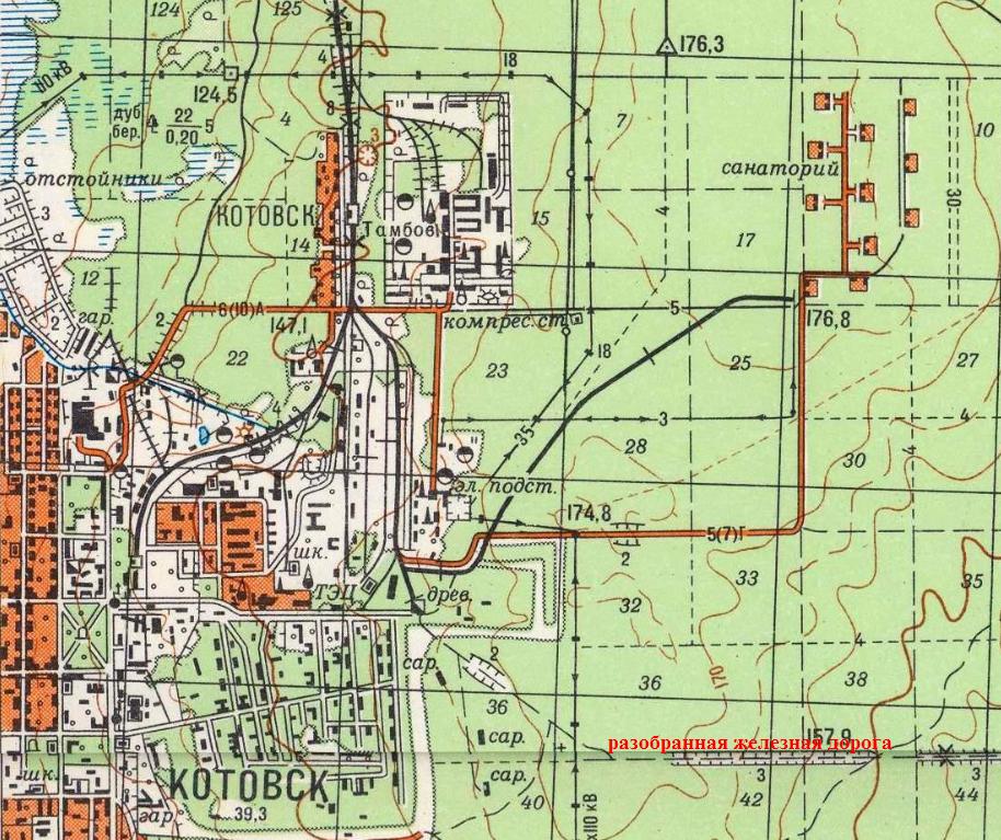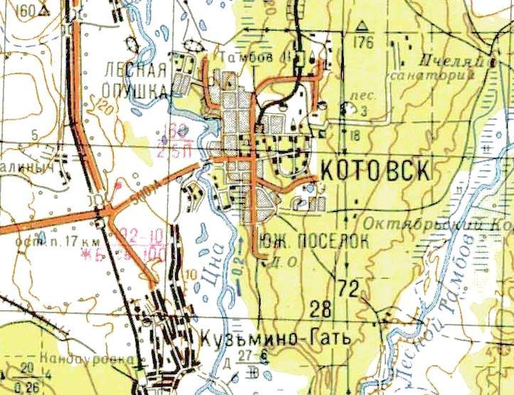 изданной в 1986 году (узкоколейная железная дорога не обозначена). На месте нынешнего города Котовск в 1914 году началось строительство порохового завода. При заводе возник одноимённый посёлок (с 1919 года назывался Красный Боевик, с 1940 года город Котовск).